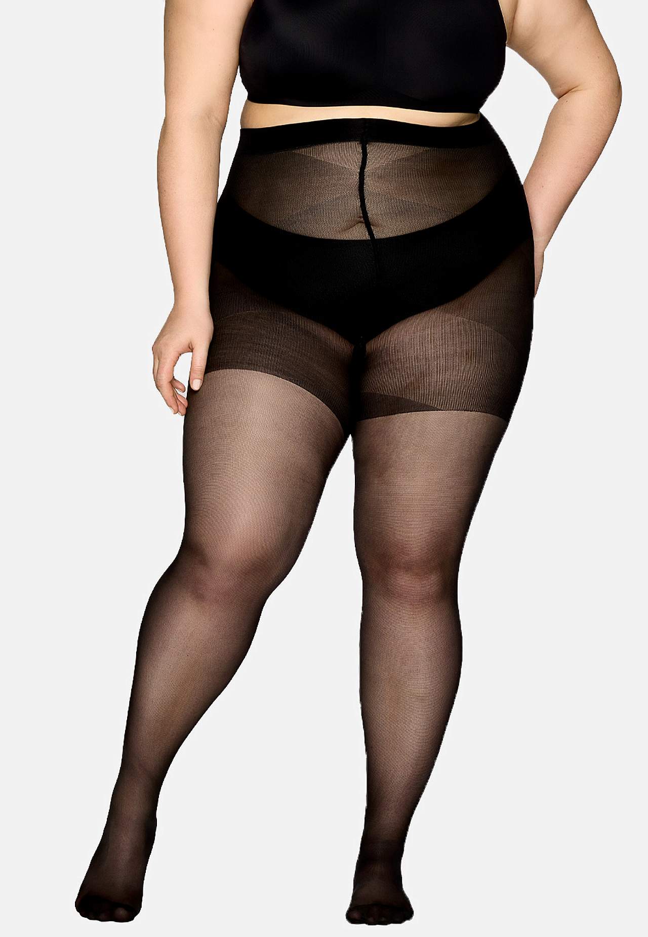 Designad för en kurvigare kroppsform. Förstärkning runt midja, stuss och lår. Bekväm hög midja. Bomullsfodrad gren. Halvmatt finish. Förstärkt tå och häl. 40 denier.