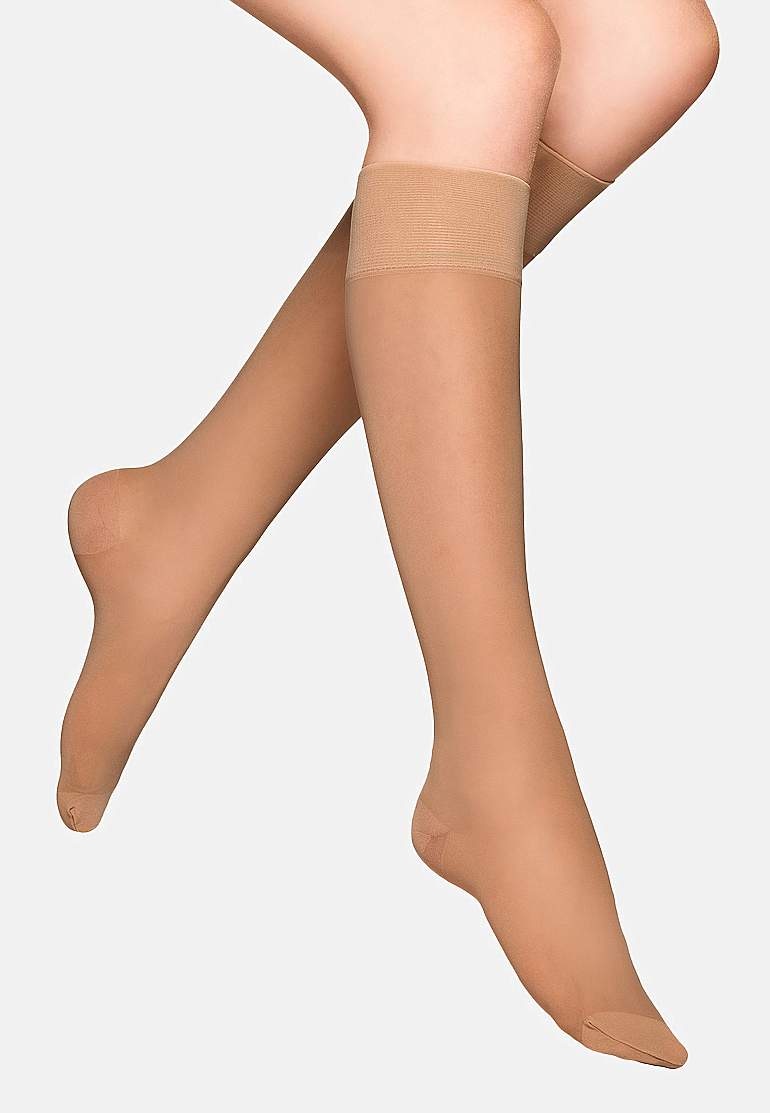 Bekväm knästrumpa med mediumstöd. Kompressionen minskar svullnad och trötthet under hela dagen. Lika sköna hemma som på resa. Bekväm, bred elastisk kant upptill. Förstärkt tå och häl. Normal passform. Halvmatt finish. 40 denier.