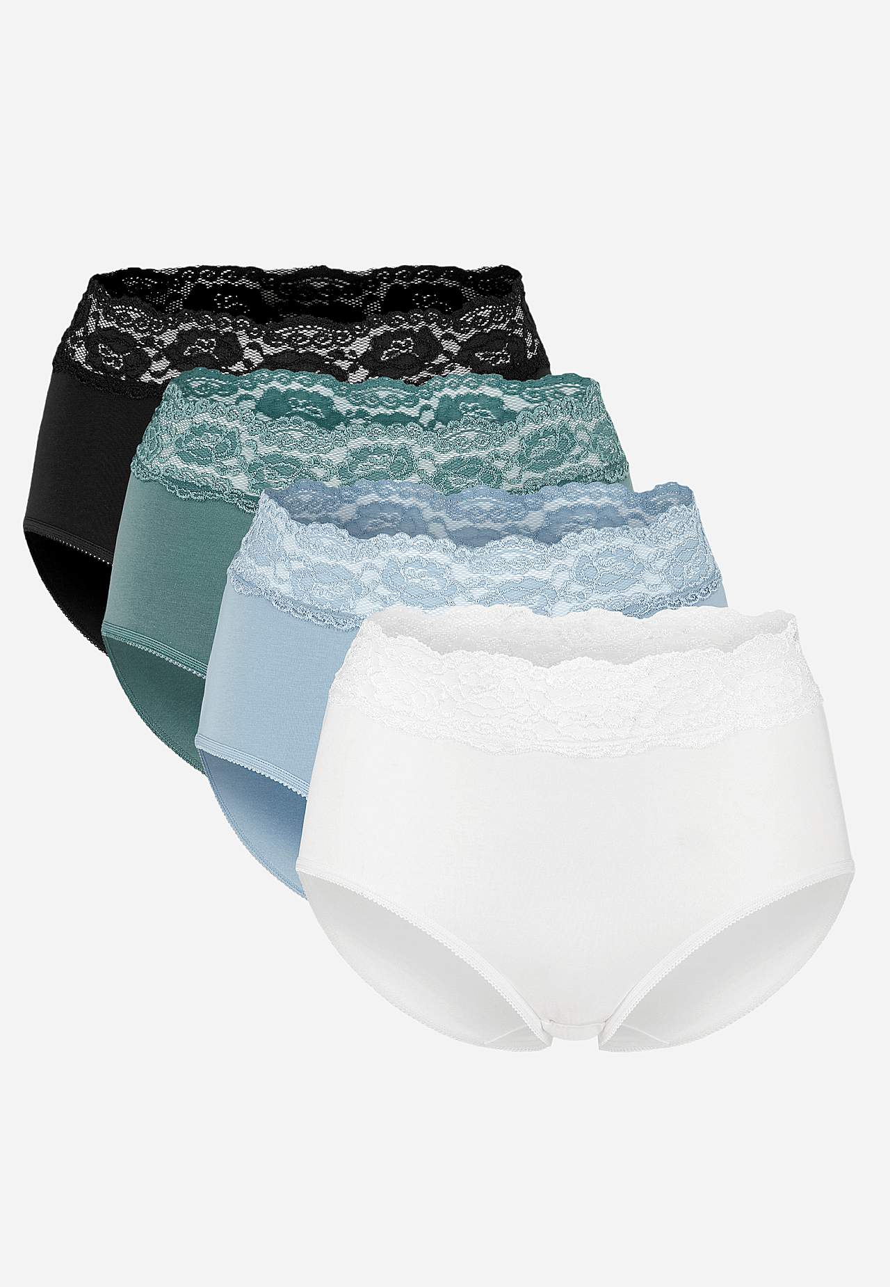 Miditrosa i mjuk, ekologisk bomull och bred, bekväm spets i midjan. Perfekt vardagstrosa som kommer i ett prisvärt 4-pack. Smal resår i benöppningen. Bomullsfodrad gren.