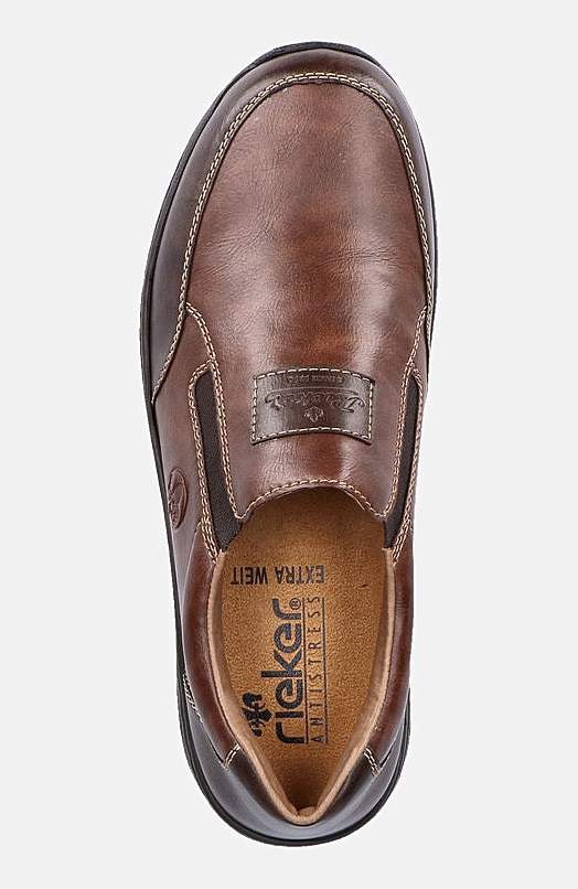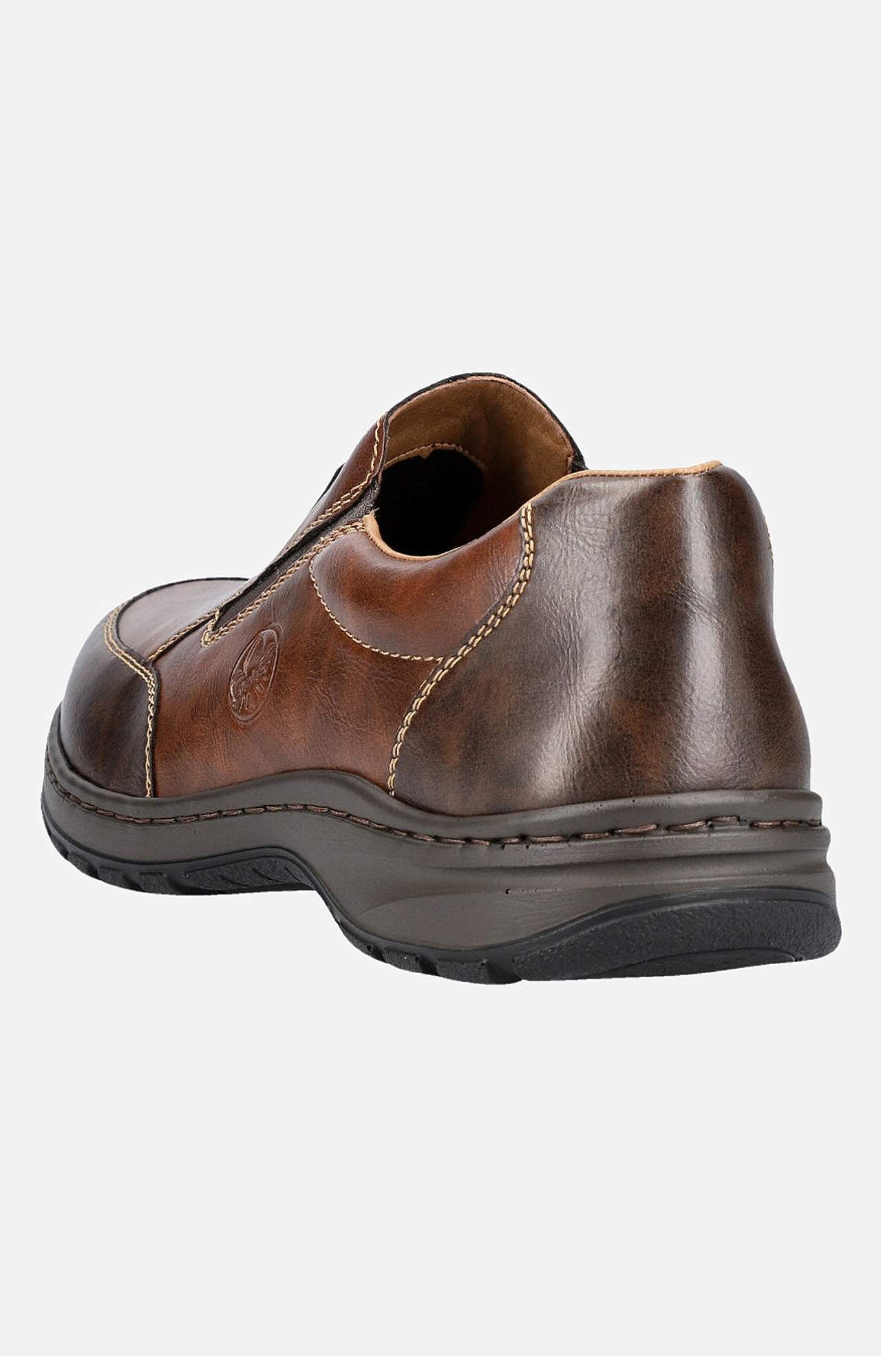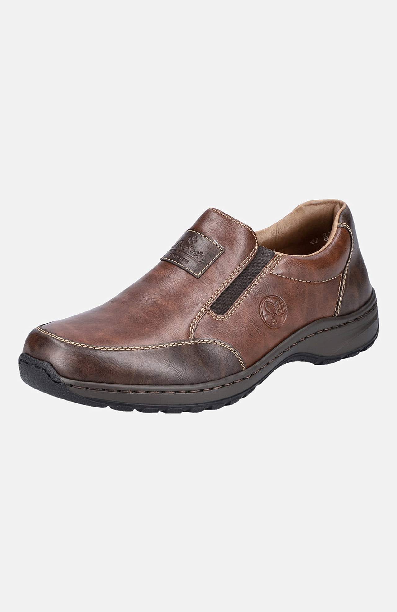Skor från Rieker. Sko i fin skinnimitation. Praktiska resårkilar för enkel av-/påtagning. Vadderad hälkappa för bättre passform. Kontrastsömmar. Ovansida i syntet. Insida i textil. Innersula i textil. Yttersula i gummi.