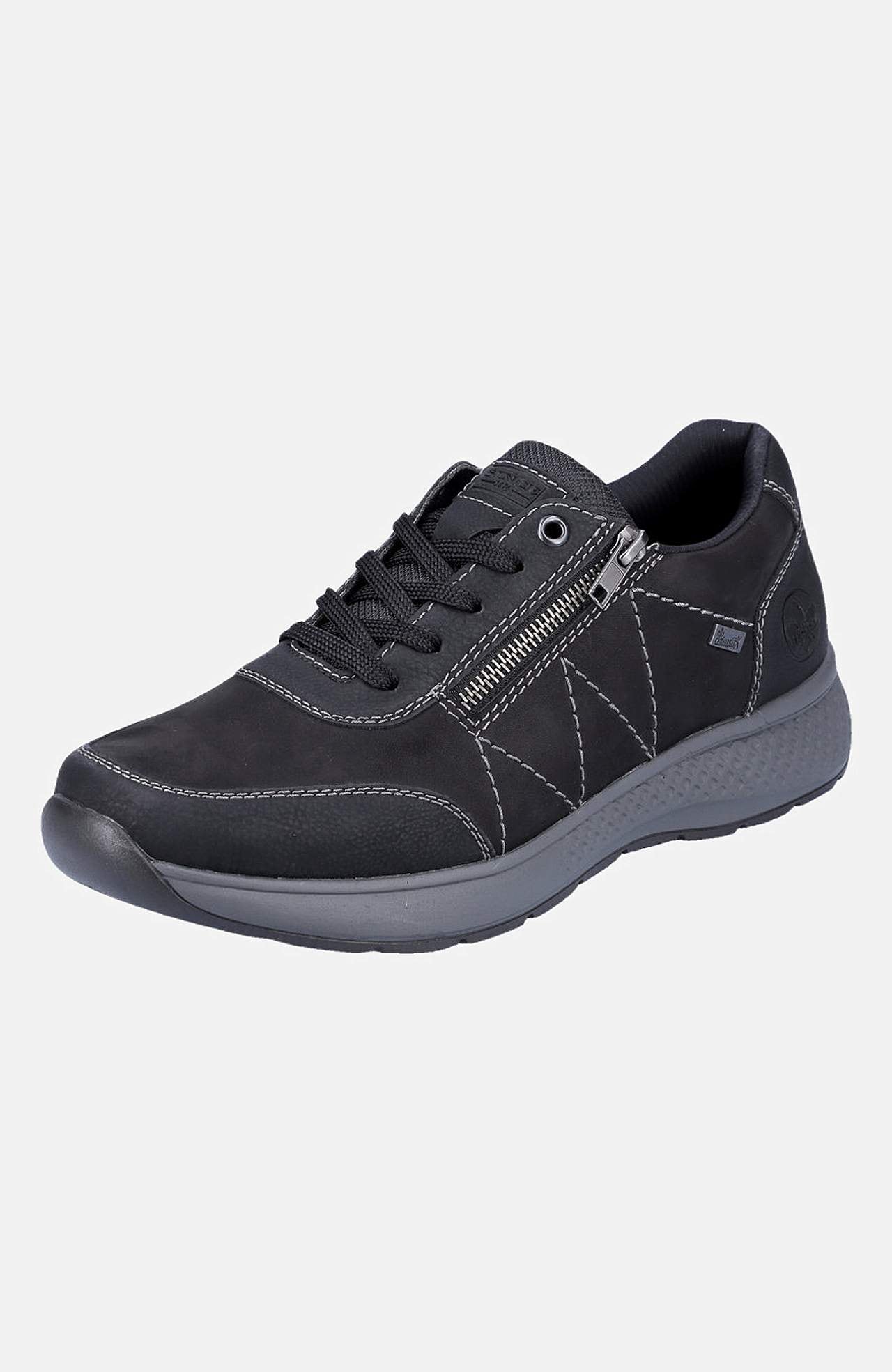 Sportig vardagssko med snörning. Praktisk, öppningsbar dragkedja. Bekväm, vadderad hälkappa. RiekerTEX:. Rieker Antistress:. Ovansida i skinn och syntet. Insida i textil. Innersula i textil. Yttersula i syntet. RiekerTEX